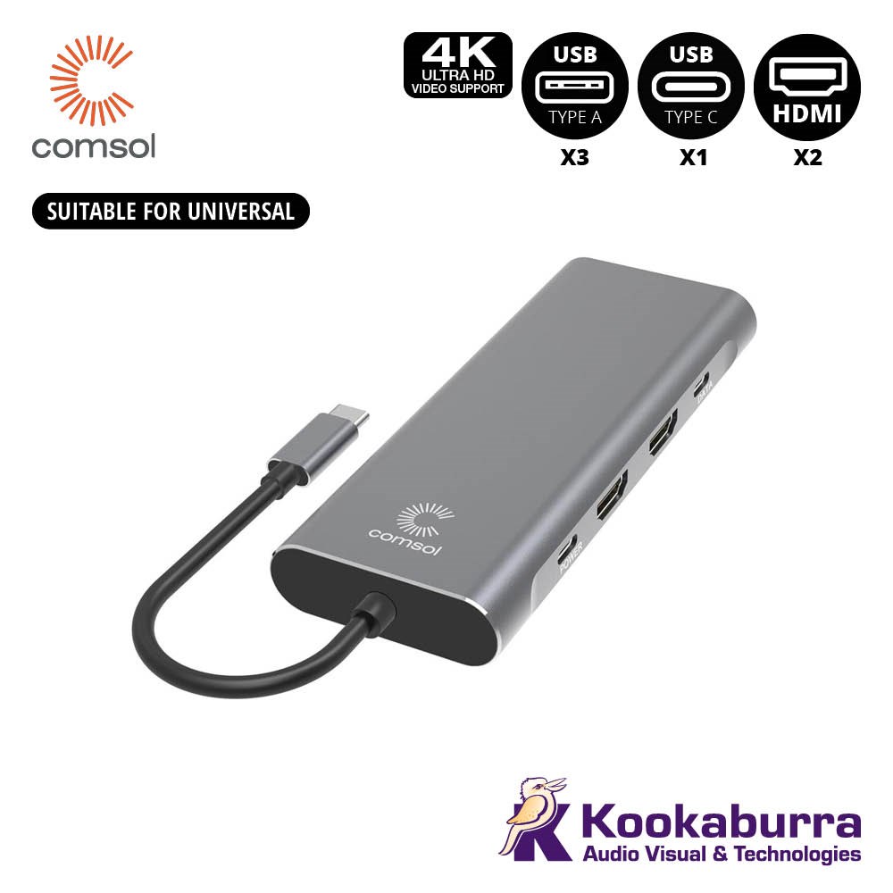 USB-C to Dual 4K HDMI, 4 x USB-A, 1 x USB-C, Ethernet and up to 90W of USB-C Power. Connect a Windows laptop with a USB-C port to two HDMI displays to increase productivity. Connect two monitors, a keyboard and mouse, USB storage devices, a network and other USB peripherals all via a single USB-C connection.*