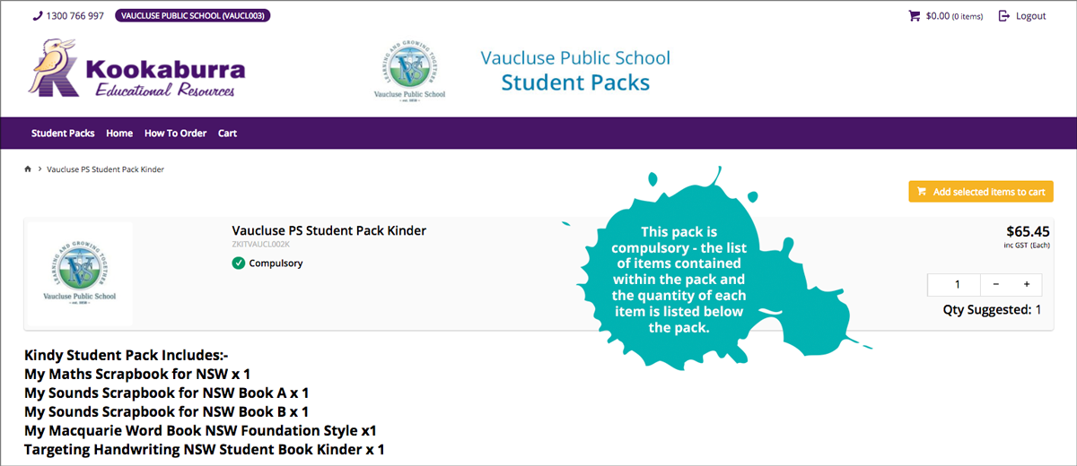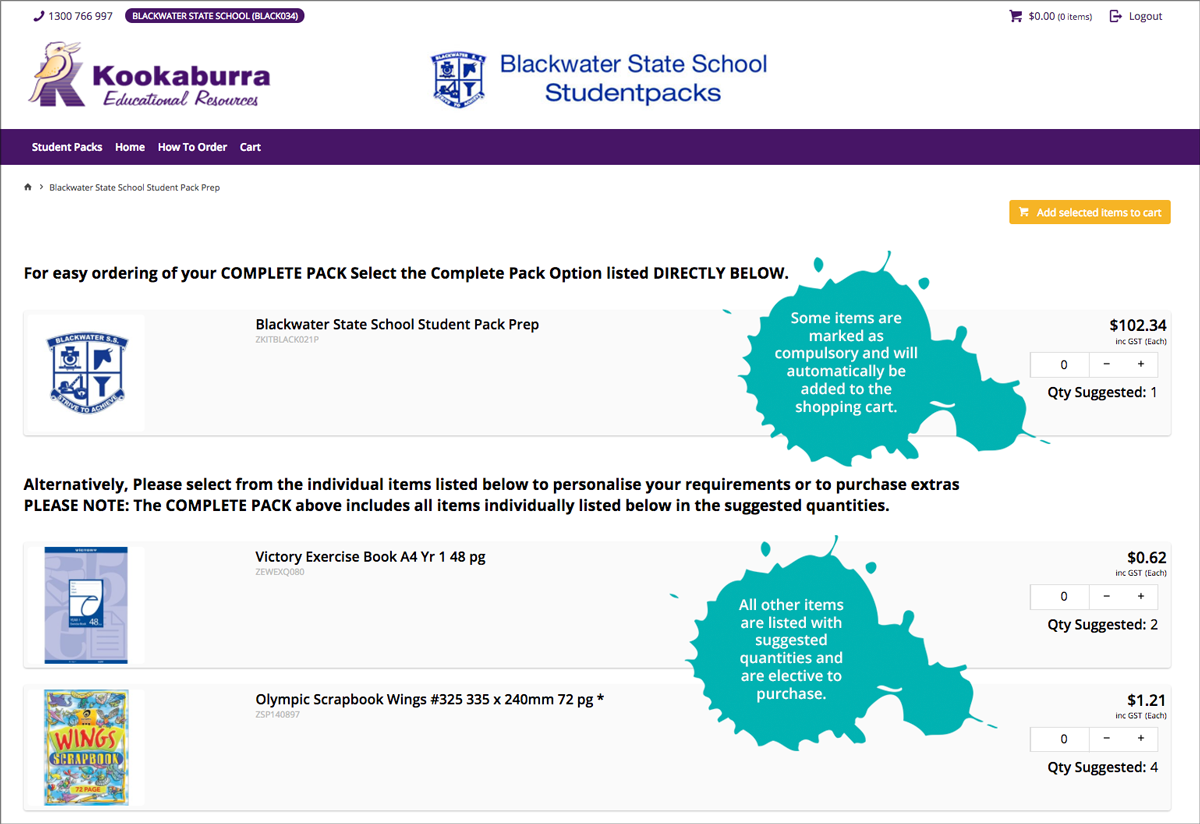 This option includes both compulsory and elective items. Items marked compulsory will automatically be added to the cart and the parent/student can select other products as they wish from a pre-selected list.