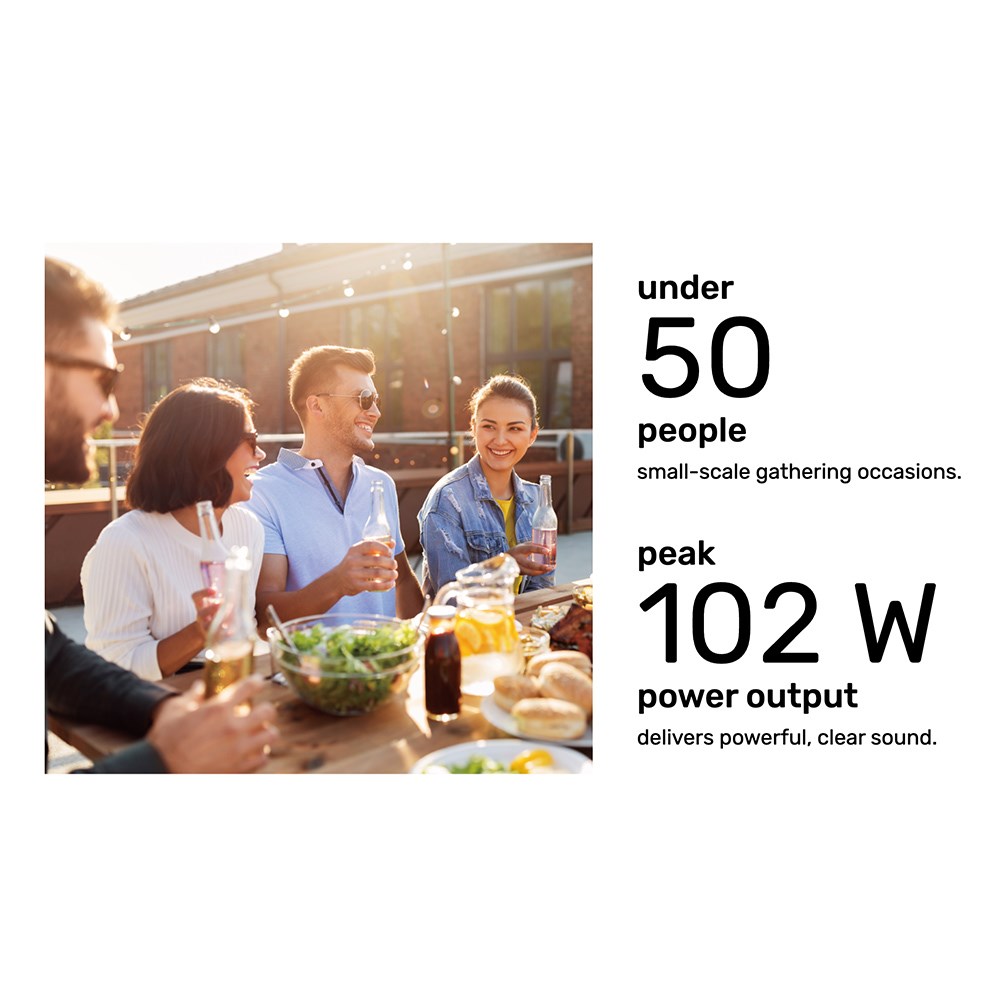• The two-way speaker cabinet is redesigned to improve the efficiency in treble frequency and delivers a clear and powerful sound effect for both speech and music.