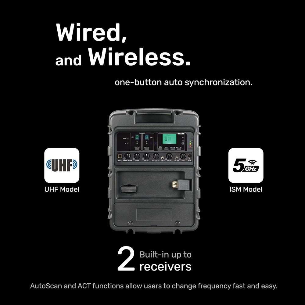 • One UHF or ISM 5.8 GHz band receiver module for long-distance and reliable reception performance.