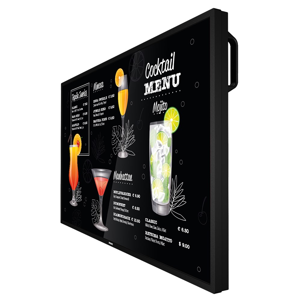 Made for 24/7 operation, the robust Philips P-Line digital signage display stands the test of time. Clear UHD picture quality and high-brightness make it perfect for demanding environments such as retail, transportation and food & beverage.